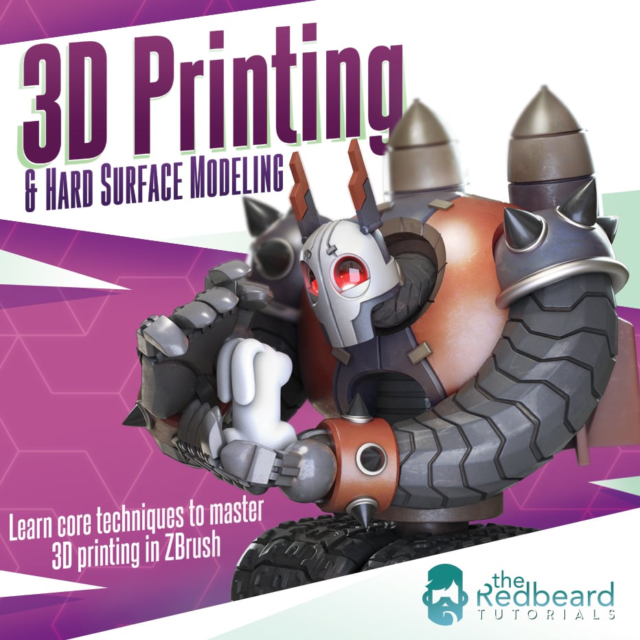 I utilize ZBrush 2019's new features, such as optimizing the folder usage and Live Boolean workflows, and how to customize your brushes to speed up your personal workflow. We'll cover ZModeler Brush from basic to advanced modeling, and learn techniques that will translate to any style of printing (FDM, SLA etc.) This tutorial is made for beginner to advanced artists looking to sharpen their skills in hard surface modeling and learn the art of 3D printing (all with Redbeard's usual sassy flair and goofy antics!)